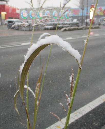 散歩をしていたら、あちらこちらで子供が雪と戯れていました。