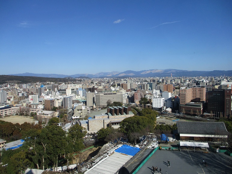 メジロにガン見されとった 用事のついでに梅見物をしてきました。 空が青い~~~~!!!前日の天候(マラソン大会当日)もうこうだったら良かったな 熊本城内の梅も満開です。特別通路から見下ろす形でしか見られないけれど、 これも今のうちだけの楽しみ方だよね。 宇土櫓はもうじき修復のため解体に・・見納めだ~ 10年後にまた会えるといいな 天守閣最上階からの眺め 空が澄んでいるためか、阿蘇の噴煙まで見えます。ひゃっほー 護国神社前の梅林。こちらも満開です。 天気がいいとついつい歩き回ってしまうから、足がクタクタになります。 でも気分はいい♪