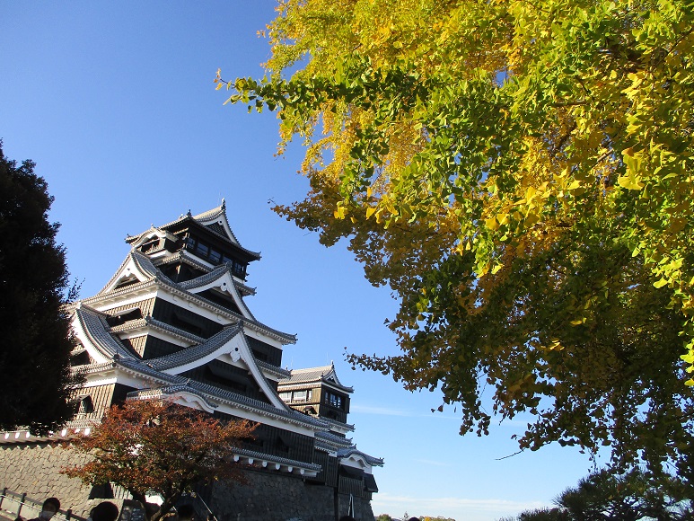 大銀杏と熊本城天守閣