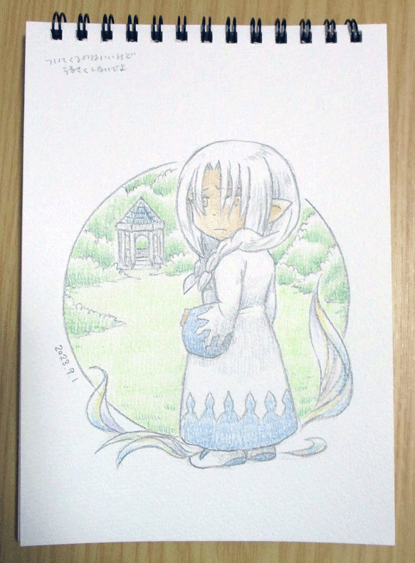 2020年のらくがきを⇒ 2023年に清書・着色 地上にいるふうにするか上から降りてくるふうにするかで、 迷った結果のどっちつかず ふふーん 色味薄いかな・・。 私はPCでしか確認できないのだけど、他の人の画面ではどう見えてるのかしら、キニナル。