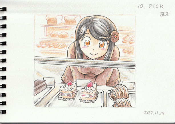 01 CRYSTAL 結晶 まずはシンプルに 02 SUIT スーツ 即興の女性 03 VESSEL 大型船 あの船から落ちたの? 04 KNOT 結び目 オリキャラ・前回27日目の二人 05 RAVEN ワタリガラス オリキャラの女性(未確定) 06 SPIRIT 魂 即興の死神さん 07 FAN 扇 11/8は皆既月食でした。昔のヒトはその日をどんな風に過ごしたのかしら 08 WATCH 時計 砂時計のフォルムが好き~っていう気持ちだけで描いてた 10 PICK 選ぶ イチゴショートケーキが好きです 11 SOUR すっぱい 09 PRESSURE 圧力 圧力鍋 13 ROOF 屋根 熊本城大天守閣の屋根。日本のお城はカッコイイのだ!! 15 HELMET 兜 武士の鎧兜はカッコイイのだ ・・今回はここまで。御仕舞!