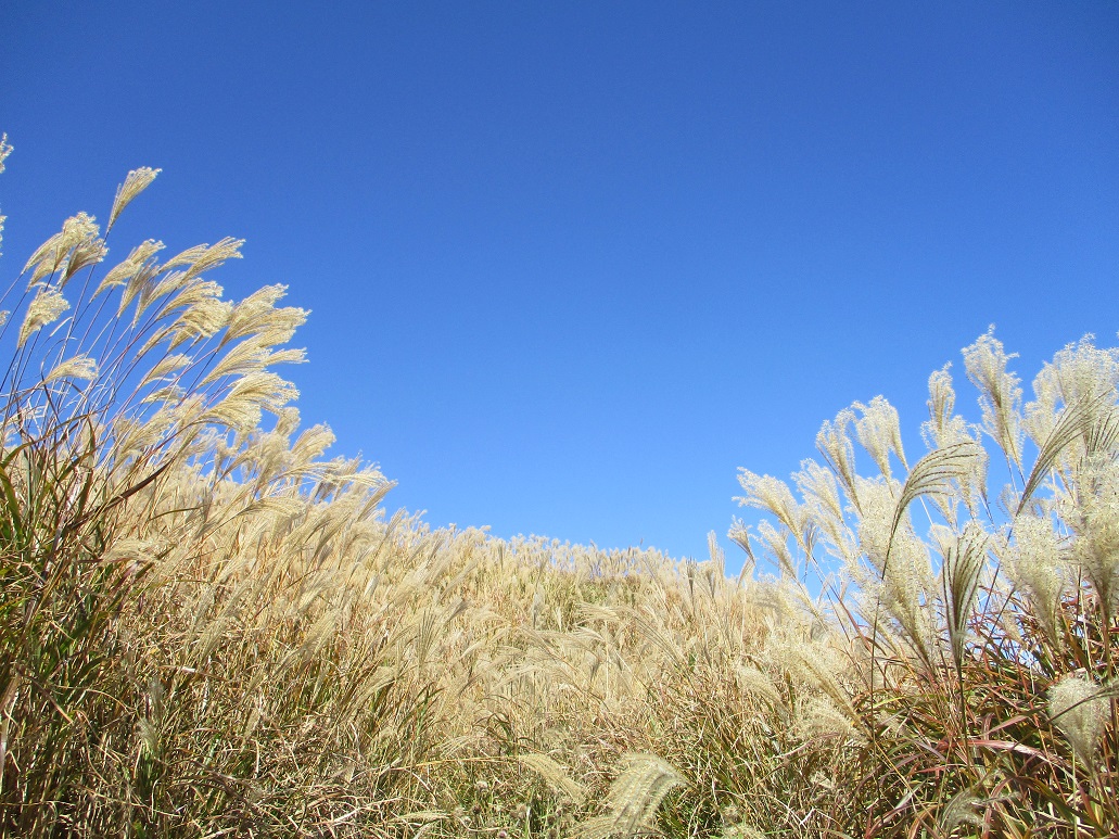 火口間近に来たのは小学生以来です。 ずっと機会を逃していたから、久しぶりに来られてよかった。 柱状節理というものらしいです。 ブラタモリでやってたみたいだけど覚えてないや もしもの時の避難壕 この日は快晴で、気候も穏やかな秋の空気に満ちていたので、 もしもがなくてよかったです。 草千里から望む烏帽子岳 高菜ドッグ! 高菜のピリリが効いてます 展望台にも登ってみました。 けっこう足腰にきます。 米塚と外輪山 金峰山と雲仙が見えます どこまでも続くススキの丘 秋だなあ~ 空がとにかく蒼くて、どこまでも澄んで、観光にはぴったりのいい日でした。 次は緑がきれいな時期にでも行きたいです。