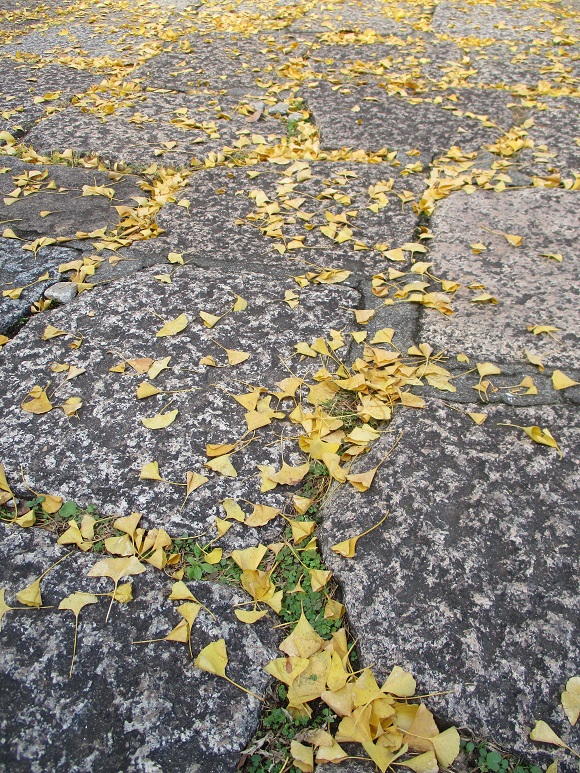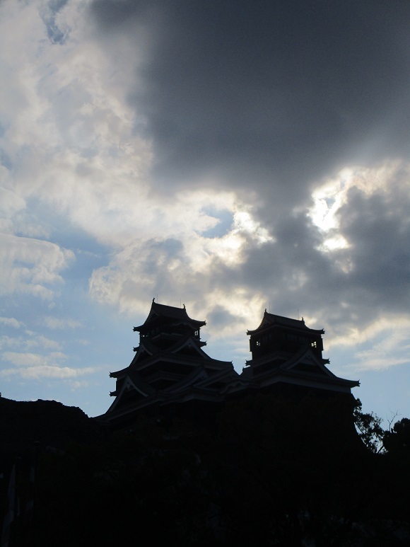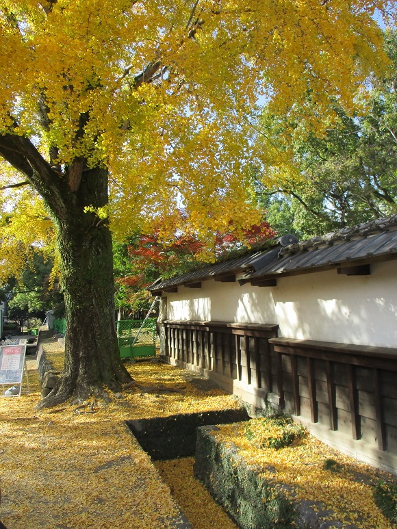まだまだ緑が多い印象だったけど、天気はよかった。 それに入口にある休憩処で食べた「紫芋いきなりだんご」が、あつあつやわらか甘くて美味しかった!これ、去年同じ場所で食べて、また食べたいな~と思ってたんです。 いもあんが本当にふわっと柔らかなんですよ。 普段の売り場を聞いておけばよかったかな~・・。 刑部邸前の大銀杏も見事に色づいてます。 それにしても建物は地震後に少し補強された程度で止まったまま・・。 いつになったら修復に向かって動き出すのかなあ 中に入れない櫓よりもこちらを先に直してほしいきもち そのままお城外周をてくてく散策。 坂道が多いから、足腰がくたくたになりました。 熊本城天守閣のシルエット