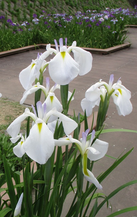 玉名の高瀬裏川へ花しょうぶを見に行ってきました。 ちょうど見頃 今年は中流あたりに花が集中して咲いているようにみえました。 白っぽいものが多かったような やや曇り気味の空に涼しい風が吹いていて、気持ちよかったです。