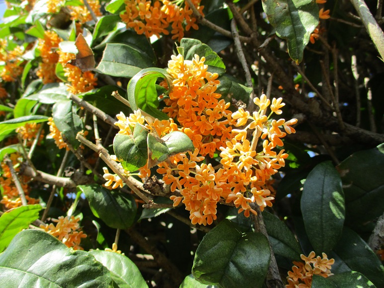 白い花とオレンジの花 似ているけれど香りが少し違うみたい 葉っぱはとくに全然違うね。とげとげ~ 銀木犀は違う季節に咲いてた記憶があったんだけど、そういうものらしい(Webしらべ) 金木犀のオレンジ色は見てると元気が出てきます ここ、写真ばかりになってきたなあ