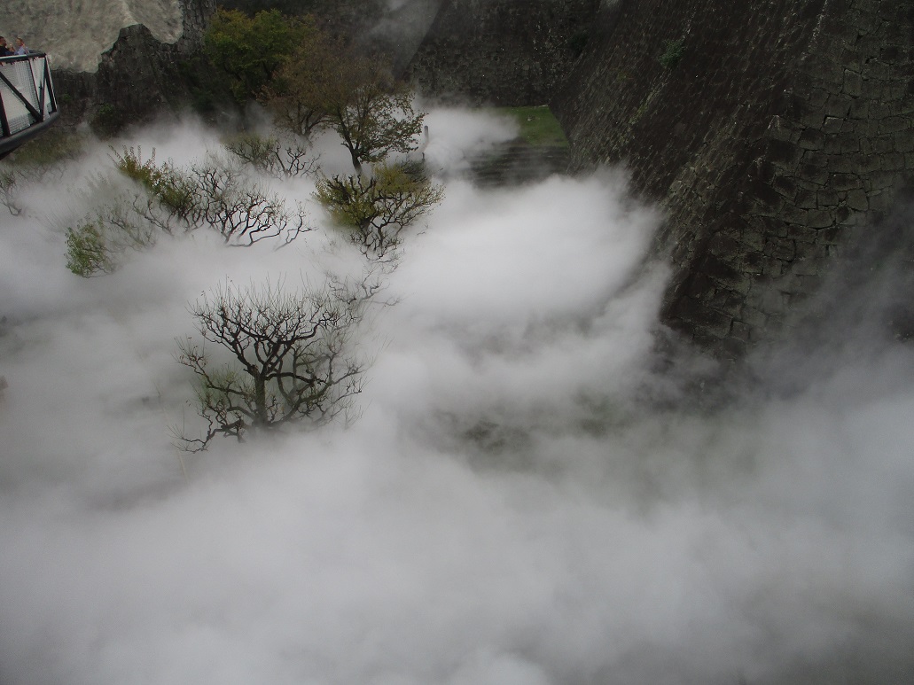 もくもくもく くもくもくも 木々と石垣が埋もれて見えるの幻想的でいいね☆ 吹き出し口 ぶしゅーっと3分間鳴り続けていました お空の上も もくもくもく 金木犀も満開のようです 次は紅葉の季節に来ようかな