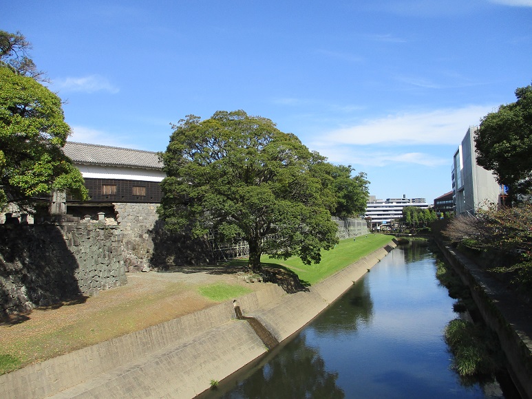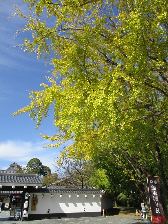 街中は金木犀の香りでいっぱい 銀杏の木もそろそろ 秋色並木道 長塀と坪井川 戌亥櫓 青空に映える天守 解体が決まっているらしい宇土櫓 この姿ははいつまで見られるのかな 新品の宇土櫓は想像しにくい 晴天と植物と石垣の中を歩くと気分がよくなります