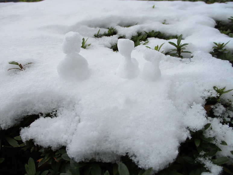 あ~ここたまらん 滅多に見られない雪景色を見る事ができて嬉しかった。 また次は数年先かなあ 生垣の上に残っていた雪を、片手で軽く握って作ってみた雪だるまmini