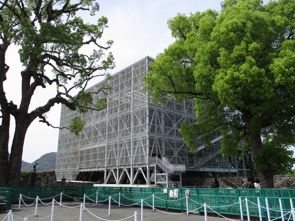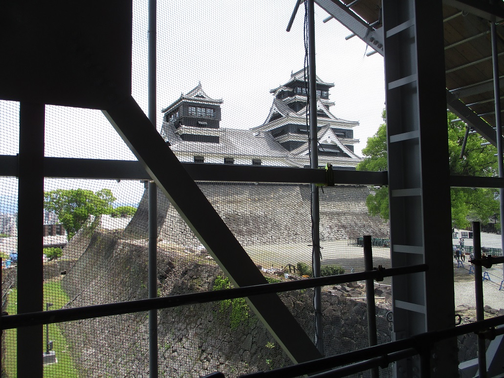 宇土櫓内部特別公開が始まったので、早速行ってまいりました。 (毎月一回、第2日曜日の予定・5月のみ3~5日の3日間) 足組みでなんも見えん・・。 宇土櫓2階部分の屋根が目の前に! 被災してそのまま8年が経過した姿か・・ 足組の中からこんにちは 宇土櫓側からみた大小の天守閣の姿は貴重です 大天守閣の最上階からみた宇土櫓 上階が透けて見えるかな・・。 熊本地震(前震)から8年が経過したということで関連番組が増え、 なんとなく心が不安定になってきたけれど、 いい天気にいい風が吹く中、珍しいものが見られて少しホッと出来ました。 4月半ばにして夏日を記録するという暑さではあったけれども!! いやいやほんと夏半番が怖いなー気温どうなるよ。 春と秋はも少しゆったり長めにいてくれていいのよ~~ 夏は控えて!まじで控えて!! 隙間から湧き出す植物に心惹かれる
