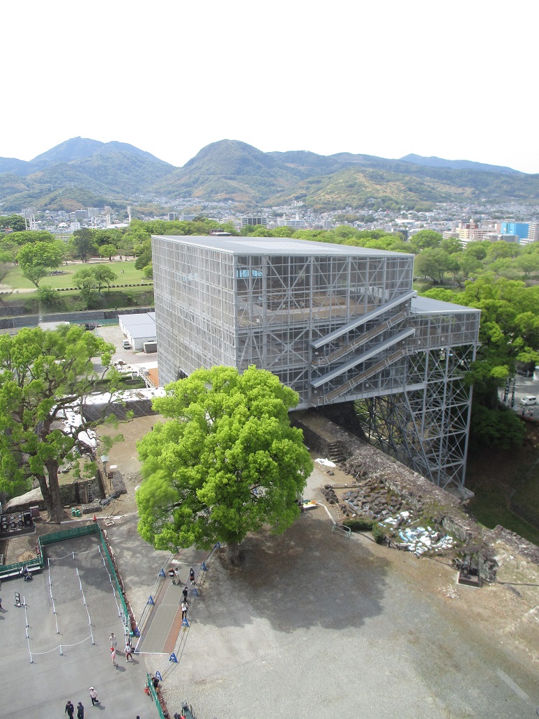 宇土櫓内部特別公開が始まったので、早速行ってまいりました。 (毎月一回、第2日曜日の予定・5月のみ3~5日の3日間) 足組みでなんも見えん・・。 宇土櫓2階部分の屋根が目の前に! 被災してそのまま8年が経過した姿か・・ 足組の中からこんにちは 宇土櫓側からみた大小の天守閣の姿は貴重です 大天守閣の最上階からみた宇土櫓 上階が透けて見えるかな・・。 熊本地震(前震)から8年が経過したということで関連番組が増え、 なんとなく心が不安定になってきたけれど、 いい天気にいい風が吹く中、珍しいものが見られて少しホッと出来ました。 4月半ばにして夏日を記録するという暑さではあったけれども!! いやいやほんと夏半番が怖いなー気温どうなるよ。 春と秋はも少しゆったり長めにいてくれていいのよ~~ 夏は控えて!まじで控えて!! 隙間から湧き出す植物に心惹かれる