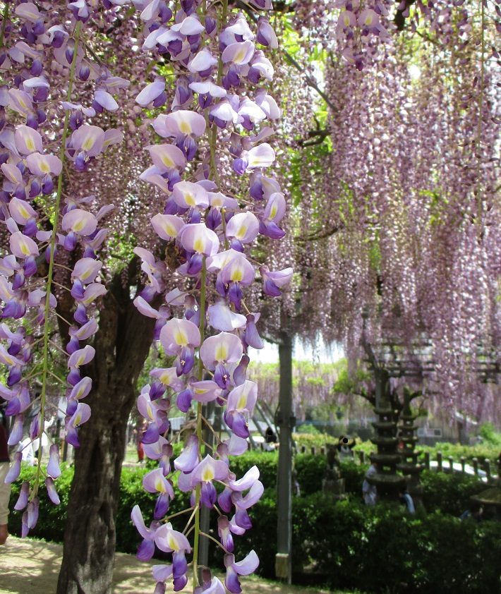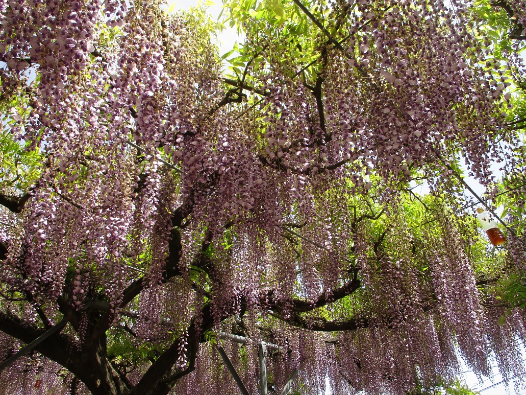 玉名にある、山田の藤を見てきました。 見渡す限りの紫色。幻想的で、ずっと見ていたいくらい・・。 藤は近所や植物園でも見ることのできる花ですが、 ここまで大きく広く枝を伸ばす藤を間近に見るのは初めてです。 天気もよくてよかった。(黄砂が少しありそうだったけども) 時折、風で揺れる様もまた素敵でした・・いい香りもした