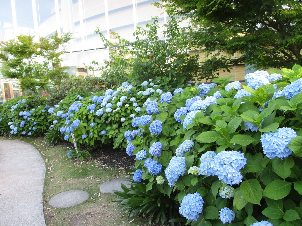 散歩を兼ねて街までお散歩してきました。 今日くらいの気温と空気だと歩くのにちょうどいい。真夏もこれくらいで頼む・・! そろそろ咲いてるかな~と見に来たサクラマチ屋上の紫陽花小道はすでにこのとおり 満開じゃーん!! 紫陽花はやっぱ青いのが好きだなあ・・なんか落ち着く ツツジもまだまだ咲いていました。 赤と青の共演♪