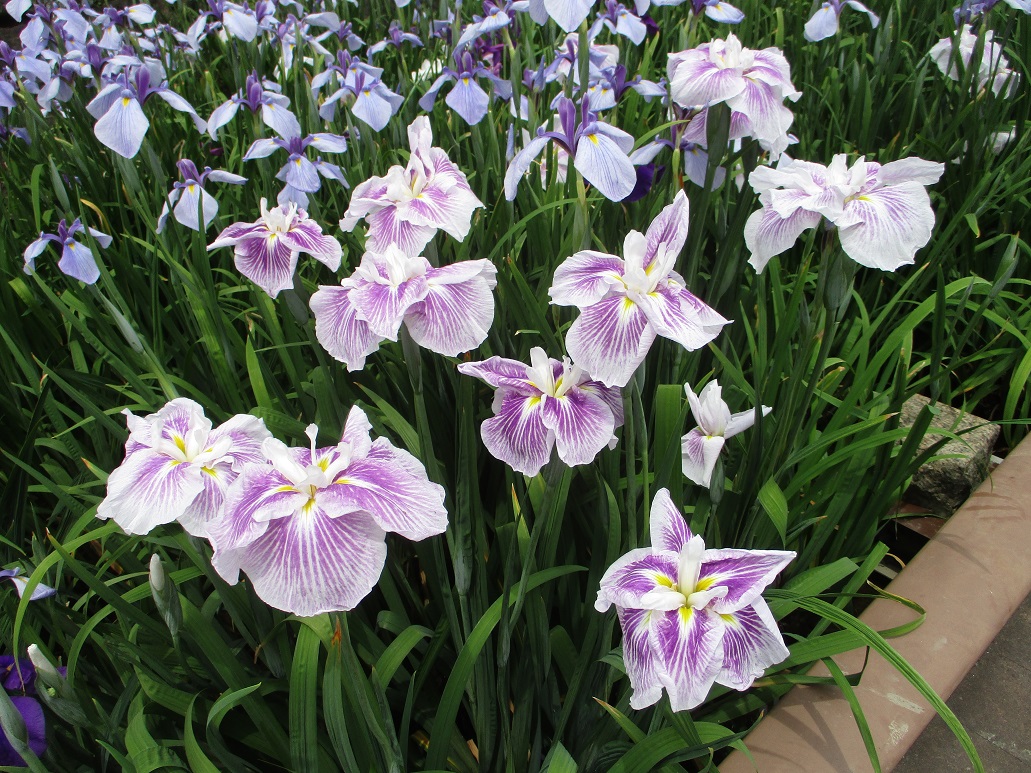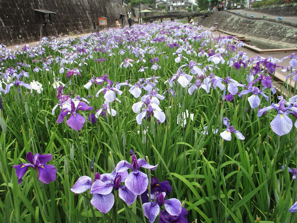 玉名の高瀬裏川へ花しょうぶを見に行ってきました。 ちょうど見頃 今年は中流あたりに花が集中して咲いているようにみえました。 白っぽいものが多かったような やや曇り気味の空に涼しい風が吹いていて、気持ちよかったです。