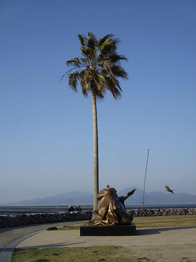突発で住吉の長部田海床路へいってきました。 広くて蒼くて気持ちよかった・・・。(帰りは凍えたけど) ・・ずっと雲仙かしらと思いながら、道中見ていたけれど、 方角と山の形から、おそらく金峰山です なんか大きい像もあったよ ジンベエさんというらしい