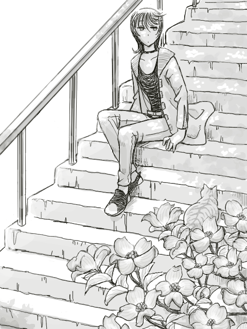ぼんやり階段に座るいつきが描きたかったのだけど、