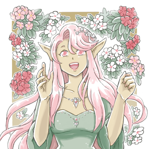 キャラクターのイメージに合う花と一緒に描いてみたくて