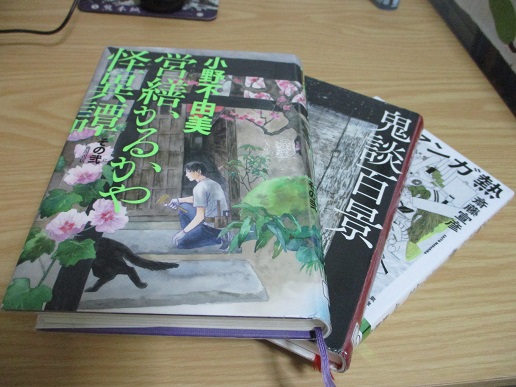 6/3 コロナで足が遠のいていた図書館へ久しぶりに赴き、 なんとなく目に付いた本を借りて読んでみました。 ■ゴーストハント読本 ゴーストハントは十二国記の小野不由美さんの作品。私はまだアニメでしか見てません。 この読本はとても充実した内容で、これは本編もちゃんと読もう・・!という気に。 ■私の本棚 こちらも小野不由美さんで探した中にあって、筆頭が小野さん。 他にも多数の本棚に悩める著名人たちの声が・・共感できたりできなかったり(笑) どちらも面白かったんだけど。すいすい読めたのは、文字というか文章に飢えていたからかも。 予約していた本の取り置き連絡も来ているので、もう少し読書タイムが続きそうです。 6/5 ■百姓貴族 ハガレン作者さんによる北海道農家マンガ 実家の話が面白すぎる この育ちなら、あの作品が生まれるのも納得だわ~ 下敷きになっているオレンジの本は次に読む本 6/9 ■ミヒャエル・エンデ「MOMO」 社会風刺的なお話かな?時間どろぼう怖い 後半から読み止めるのが難しいくらい面白かった カメのカシオペイアについて行きたい 6/12 ■残穢 何故か読む前から、そわそわと背後や薄暗がりが異様に気になってしまった(苦笑) 映画版を何年か前に見ていたので、最終章はひやひやしながら頁を捲ったのだけど。 あちらのラストはよくあるホラー映画っぽくまとめてあったっけなあ。 ■営繕かるかや怪異譚 奥庭より/屋根裏に/雨の鈴/異形のひと/潮満ちの井戸/檻の外 こちらは以前に読んだことがあるんだけど、続編が図書館に入っているようなので まずは復習、と借りてみた。次はこれを読む。⇒6/15読了 喪服の女性、怖いけどどこか悲しげで気になる。 営繕屋の尾端さん、印象が蟲師のギンコを思い出すなあって、表紙絵、蟲師の人じゃーん。 本に関係ないけど、 子供の頃、夏休みの正午には「あなたの知らない世界」という番組があって、 とても楽しみにしていたことを思い出しました。 「世にも奇妙な物語」とか好きだったんだよね。 6/19 ■マンガ熱 荒川弘さんのが読みたくて借りてみたんだけど、あれ、これ前に読んでたなあ 知らない作家さんの作品も気になる。 ■営繕かるかや怪異譚 その弐 芙蓉忌/関守/まつとし聞かば/魂やどりて/水の声/まさくに 初っ端から怖くて、尾端さんが登場すると安心できる。 道連れを欲しがる女性はこわすぎるけど、見守ってくれる存在はありがたいね。 ホラーだけど怖いだけじゃないところがよい けど、まさくにさーんには、伝え方はもう少しソフトにとお願いしたい(怖 ■鬼談百景 これから読む⇒6/21読了 断片的な「こんな話があるよ」集という感じで、馴染むのに少しかかりました。 怖いのよりも、謎めいたお話が多かった印象。 残穢で強く印象に残っていた、ぶらんこと欄間のネタはここからなんですねえ 久しぶりにTVの「世にも奇妙な物語」をリアルタイムで見ました。 怖いのやシュールなのやで、4作とも面白くてよかった。